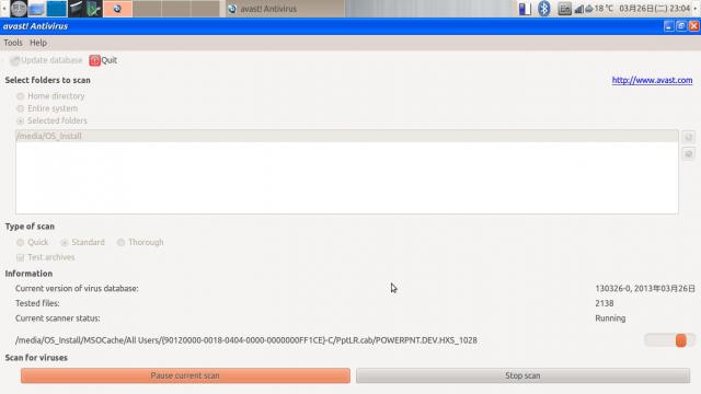 這是我安裝在我的 MSI 筆電上,將硬碟掛載起來,然後在更新好病毒碼之後,進行掃毒的示範。