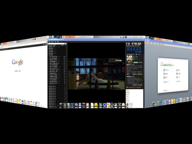 而且預設已經把 compiz 特效都裝起來,使用起來絕對能滿足虛榮心。(例如,按住[Ctrl]-[Alt],然後按方向鍵,或是滑鼠隨意拉看看)