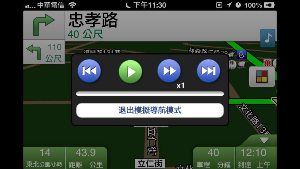 模擬導航的部份,也是各家全有的功能,不過可以調整速度的就不是全部了,Garmin 雖然也有速度調整,但是個人感覺沒有很明顯。不過像 Mio 可以直接跳過不想看的路段,還有 1X~8X 的完整變速,在模擬導航這點上完勝。