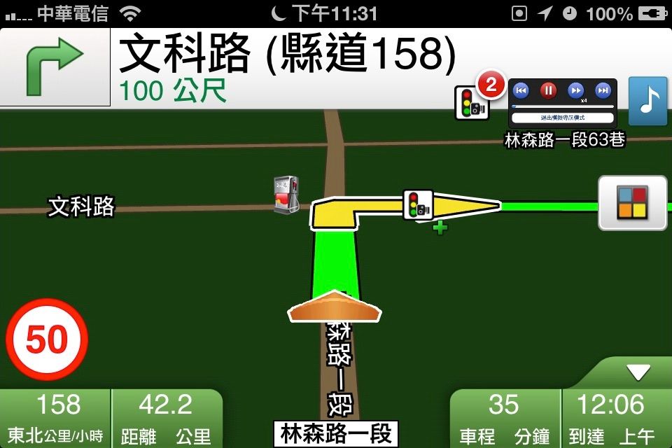 既然是 iOS 上的 app,當然要支援一些系統特色功能,才做的出與車機的差異性吧。首先最明顯的就是,同時聽音樂。車機的多媒體播放一般是獨立於導航之外的程式,沒辦法同時用。這樣程度的多工放在 iOS 系統上,本身完全不是問題,不過怎麼處理得好,讓用戶感到音樂與語音之間的銜接,沒有違和感,這才是貼心。Polnav 直接把導航佔住了系統音樂介面,好處是背景導航會比較好寫,但是相對的,就把系統音樂播放功能給卡死了。而 Papago 雖然是音樂與語音可以同時共存,但是音量完全一樣,所以整個導航指示就… 你能想像聽成「前方 300 公尺 旋轉、跳躍、我閉上眼」是什麼狀況嗎?Sygic 甚至貼心到可以將兩者分開,語音由喇叭發聲,音樂由耳機口出來。