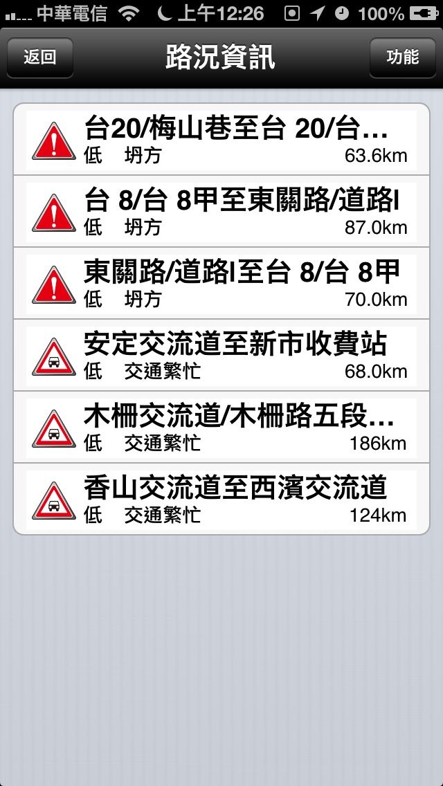 ▲ 導航王的前方 Live 路況,與 Papago 的 TMC 資訊列表