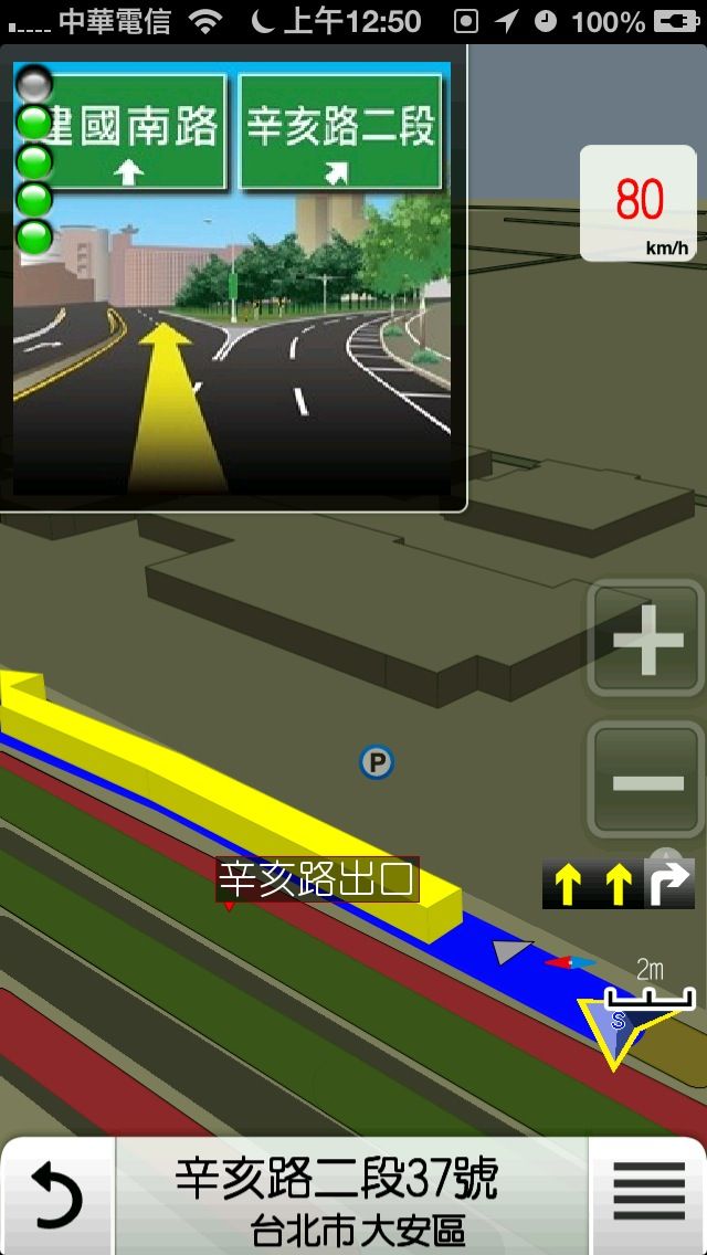 衛星訊號有時在橋下或隧道中會減弱甚至收不到,導航王在 iPhone4 剛出來的時候,就有先提出使用陀螺儀感應來輔助定位判斷的「玩法」,無獨有偶,Sygic 也支持這樣玩,至於有沒有比較準確呢?其實現在我 iPhone 5 衛星定位晶片不錯吧,所以感覺差不多…