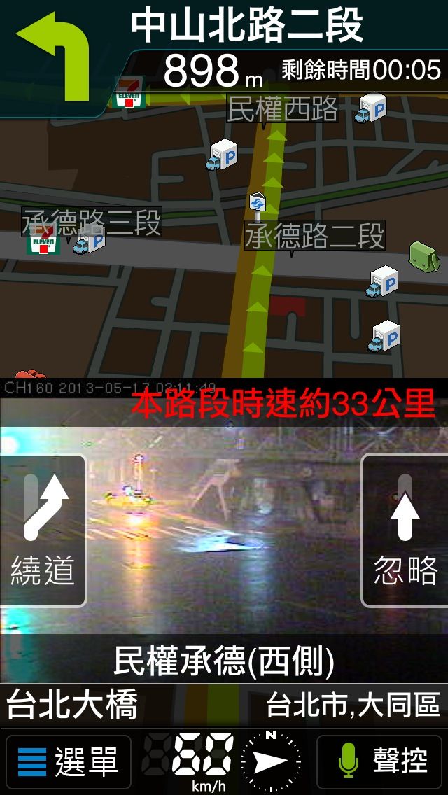 導航王及 Garmin 都具有「導航中即時路況回避」(其實 Papago 我很不確定,應該說我使用經驗中,沒發生過,也許是在規劃時就避免了)。