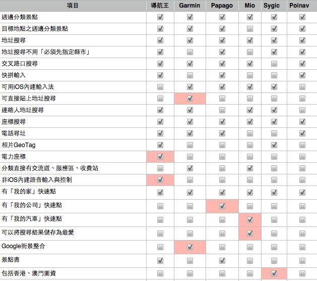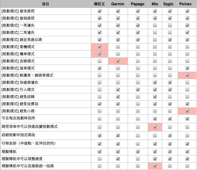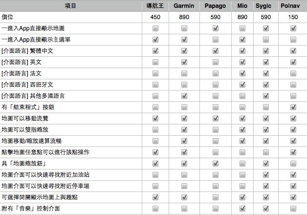 我只能從明顯的功能上有無,來做簡單的比較,而且這些也是目前版本的狀況,app 是一直在更新的,誰保證將來會不會進步到非吳下阿蒙呢?六套導航,各有自己的特色與不足的地方,搭配需求與價格來看,才能做出對自己來說 C/P 值最好的選擇。