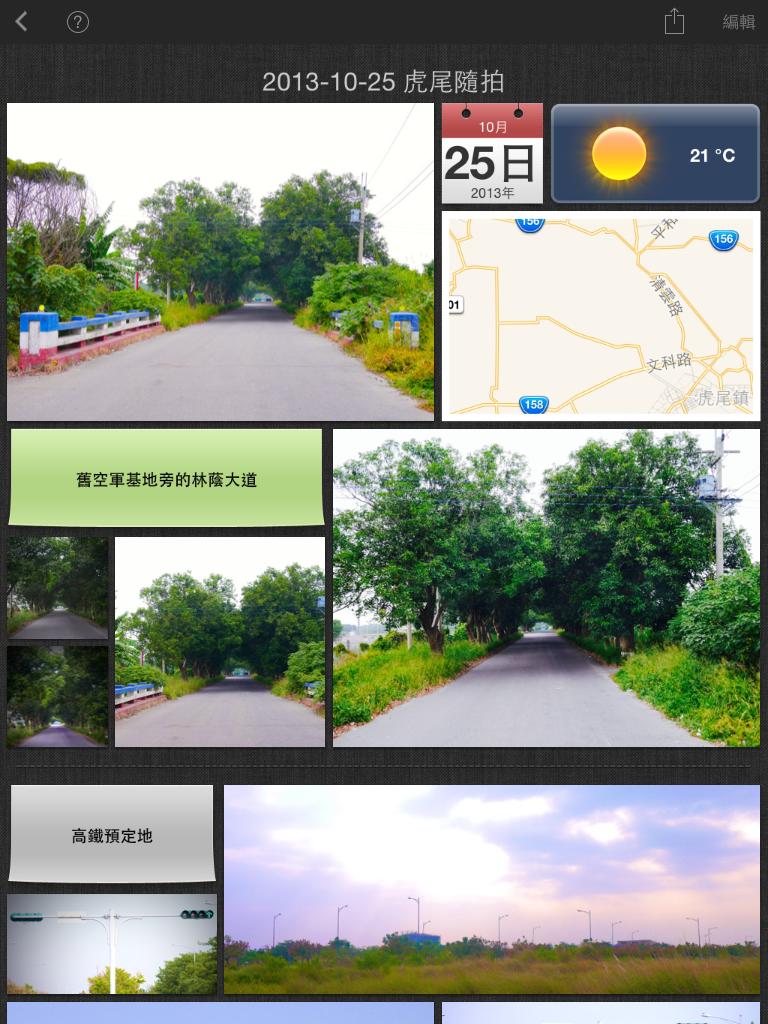 我只使用它來編輯 GX1 拍的 Jpeg 檔,因為一張也有 7 MB 左右,我的 iPad Mini 一代硬體有點吃緊… 只是有點啦,看得到成品,也就表示能順利完成。