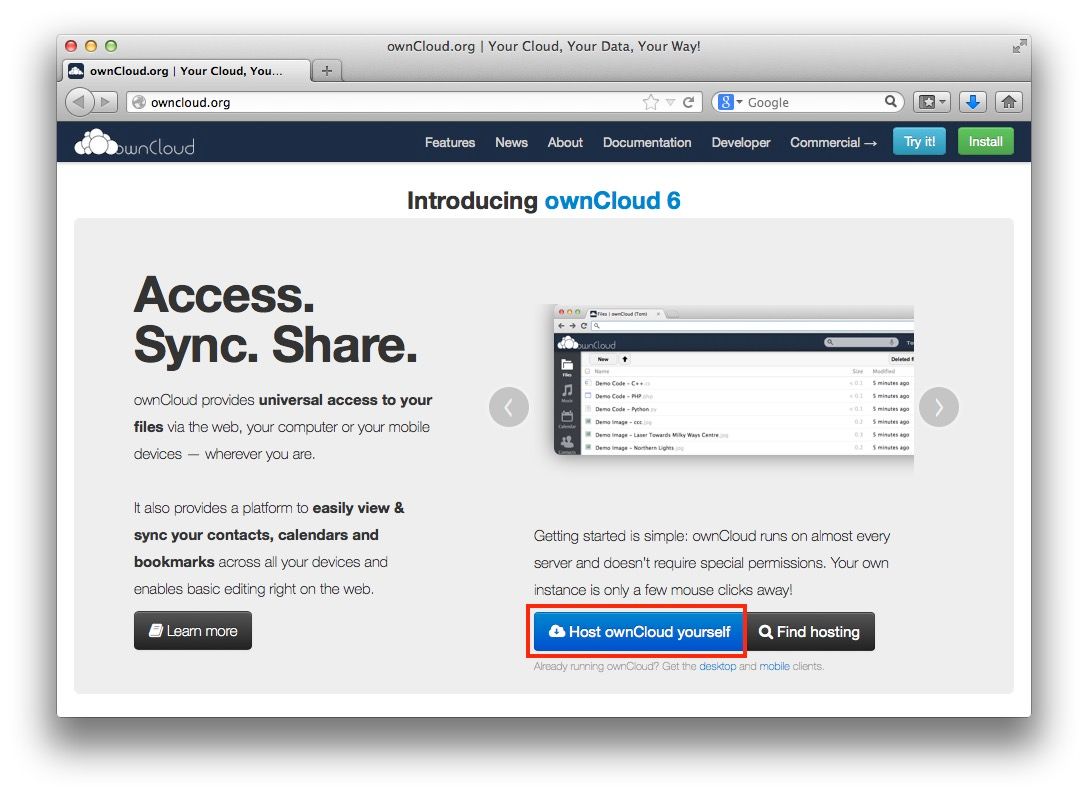 官方網站:http://owncloud.org/