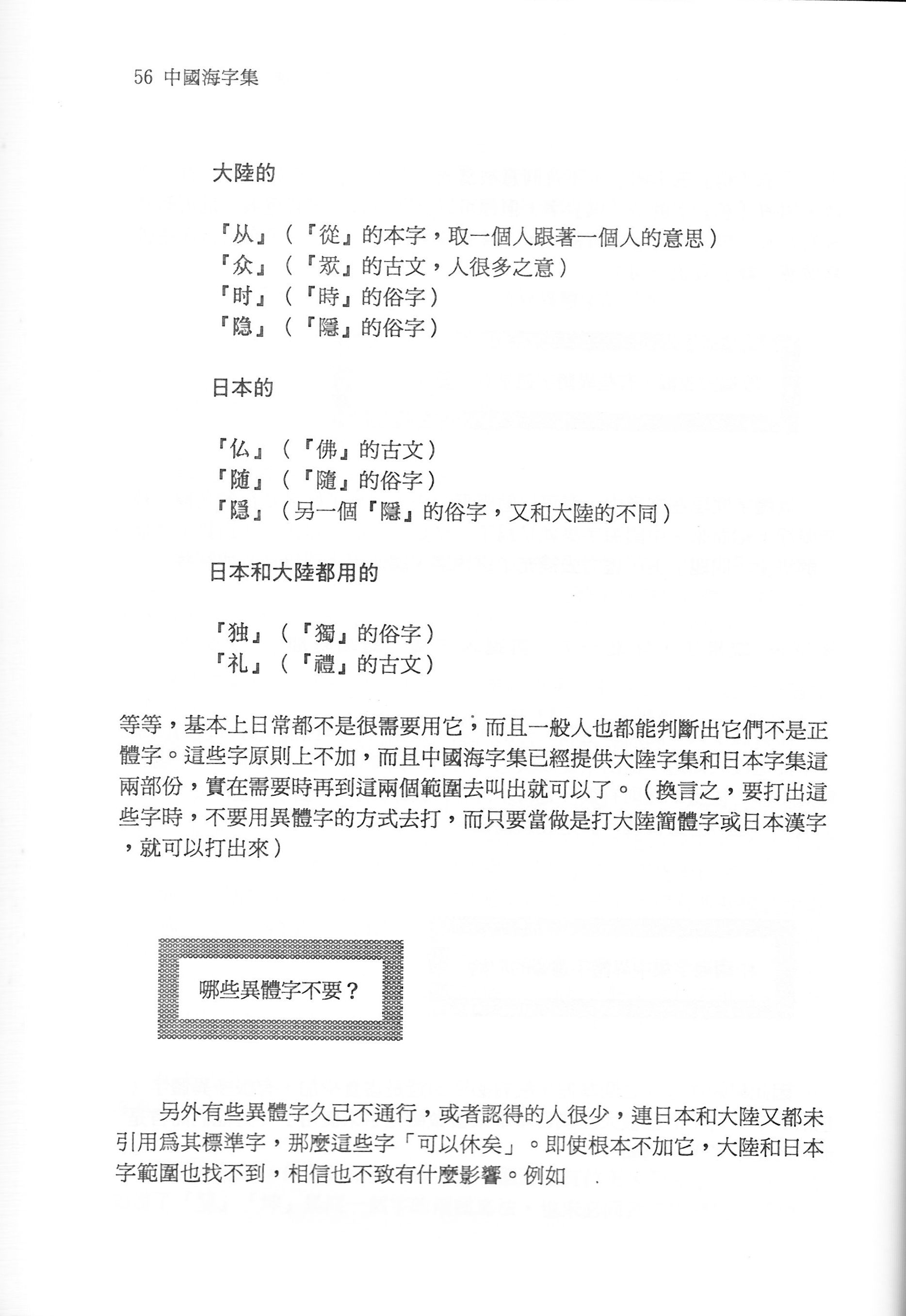 另外,上一篇說過,標準字集有分為常用字及非常用字,而這其中的區分也非常奇怪。常用字中包括了「觼、嘐、篛、鼙、鶸…」等根本難得一見的字,非常用字裡也有「万、沏、厘、紈、菖、酢、鯰、鑫、鱈…」等日常可見的字。