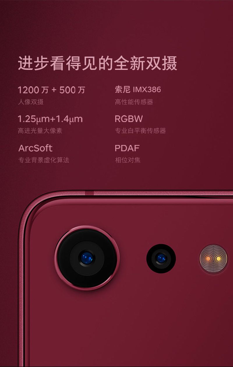 從堅果 Pro 的彩色+黑白雙攝而來,改為業界普遍採用的 Sony IMX386 + 三星景深鏡頭的雙攝,令人可以期待。