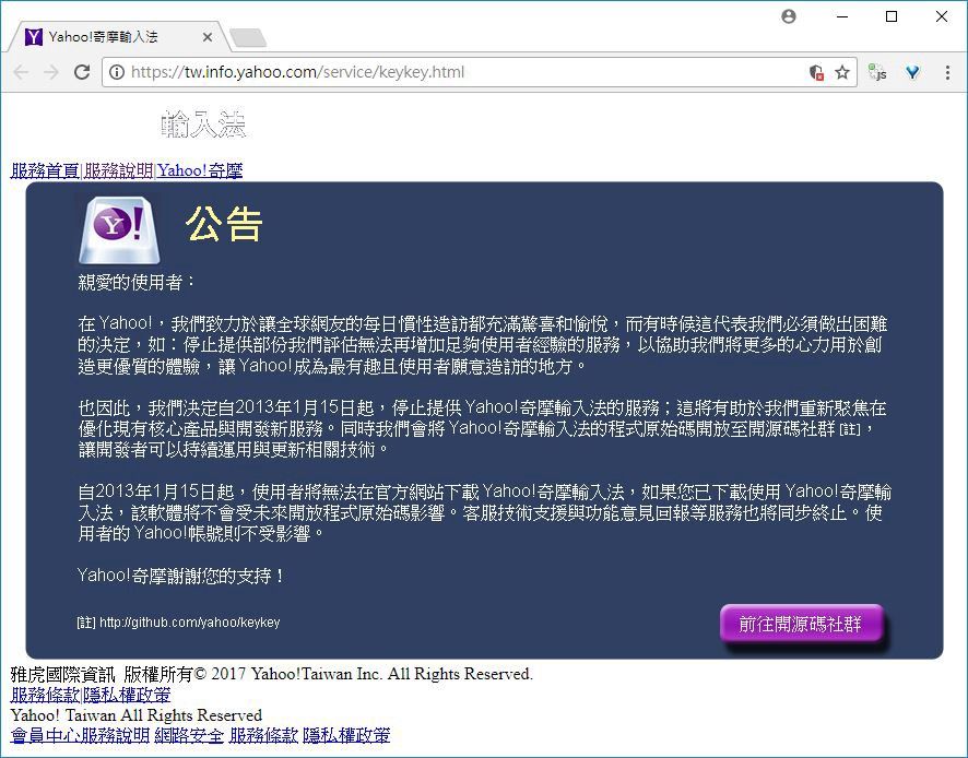 註:奇摩輸入法已經停止開發,這已是最終版本。