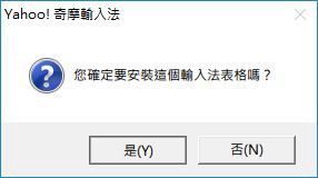 5. 雙點要安裝的 .CIN 輸入法表格,奇摩會問你要不要安裝,當然點「是」。