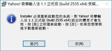 4. 然後奇摩輸入法要求重新開機,先不要。我們要先安裝輸入法表格。