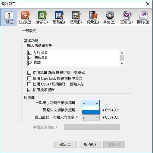 7. 首先,將「一點通」的快速鍵,修改為較少用到的「~」。