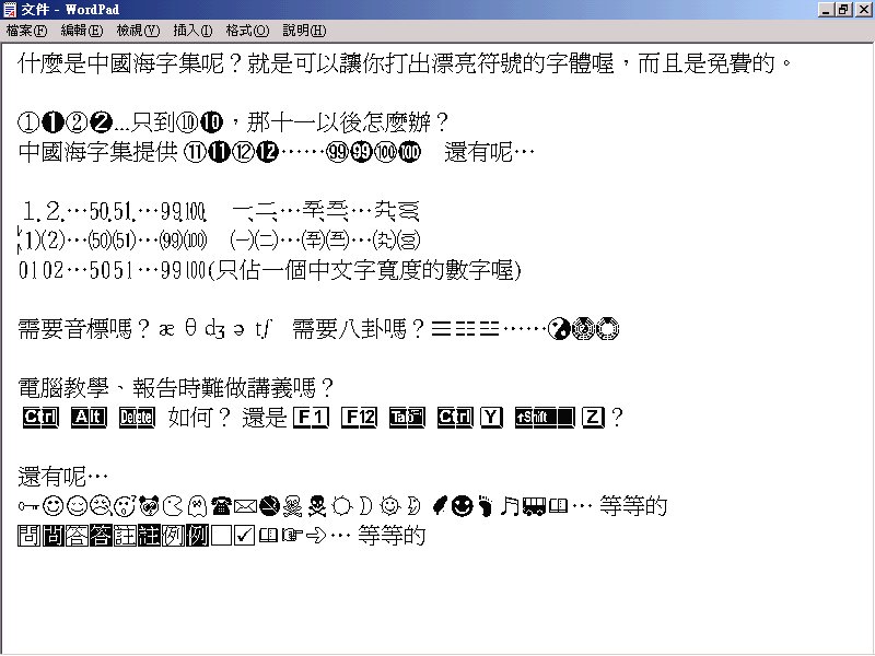 除了對中國海字集支援外,還方便了一些箭頭、表格的打法。