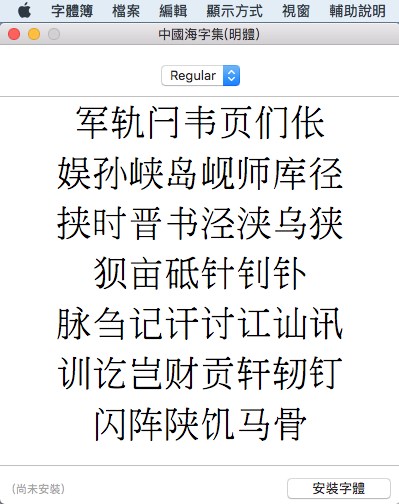 不知道還有沒有人記得那個 Big-5 碼通行卻大量缺字的年代,有一套很好用的擴充字集橫空出世,拯救眾人? 中國海字集是當年最流行的非官方字集,雖然許多人不是用他的額外造字,而是喜歡那些好看的圖形… 在進入 Unicode 年代之後,眾人也對它念念不忘,還有人做了 Unicode 補完計劃,讓它們可以相容。 不過在 Unicode 非常普及,中國海字集愈來愈不好裝,使用率愈來愈低之後,就只存在回憶之中了。 雖然現今來說意義已經不大,但我還是想辦法實驗,結果還真讓我把中國海字集明體PD版給修好了。 可以匯入現今的作業系統,甚至在 macOS 中使用。 ![]() 目前來說,本站的輕鬆輸入法暫時不會支援,僅僅只是懷念,或想使用這些圖形時,可以複製到文件中使用。 中國海字集明體PD版 [下載] 安裝方式:macOS 或 Windows 10 底下,皆可直接開啟 .ttf 字型檔,然後點按鈕就能安裝。 ![]() 以下,有裝中國海字集的系統才能正常觀看。也可以從列表中將字元複製到文件中,指定字型為「CSW」或「中國海字集(明體)」,就能使用。 字集範例 ※♀♂ ○●◎⊙□■§ 車糸言貝雨八耳隹鳥儿 手田水口山戈人入心 日門尸戶木火土士竹十大中虫寸 又乂金女月弓一 在最後,要不要來看看使用中國海字集的 [輕鬆輸入法字形解說],或是 [中國海字集的字元列表] 呢? |