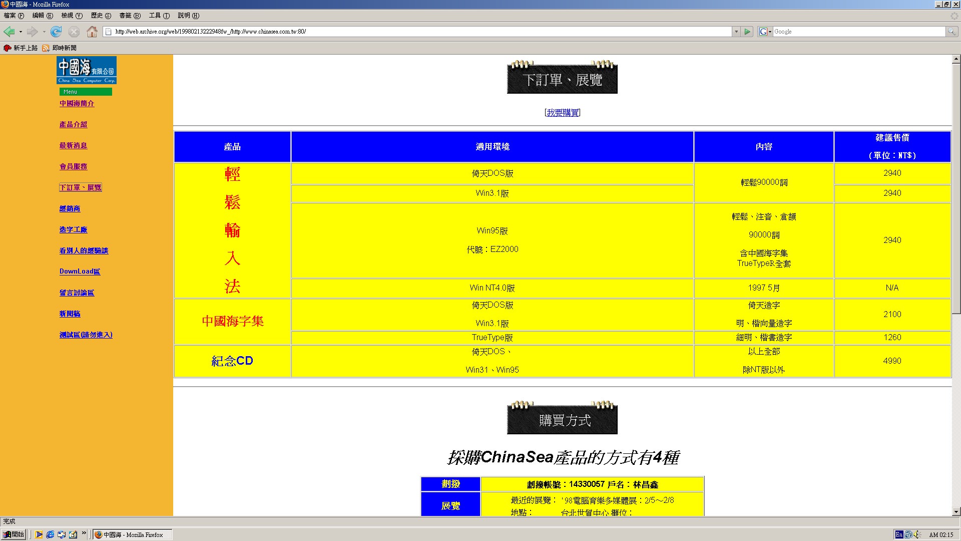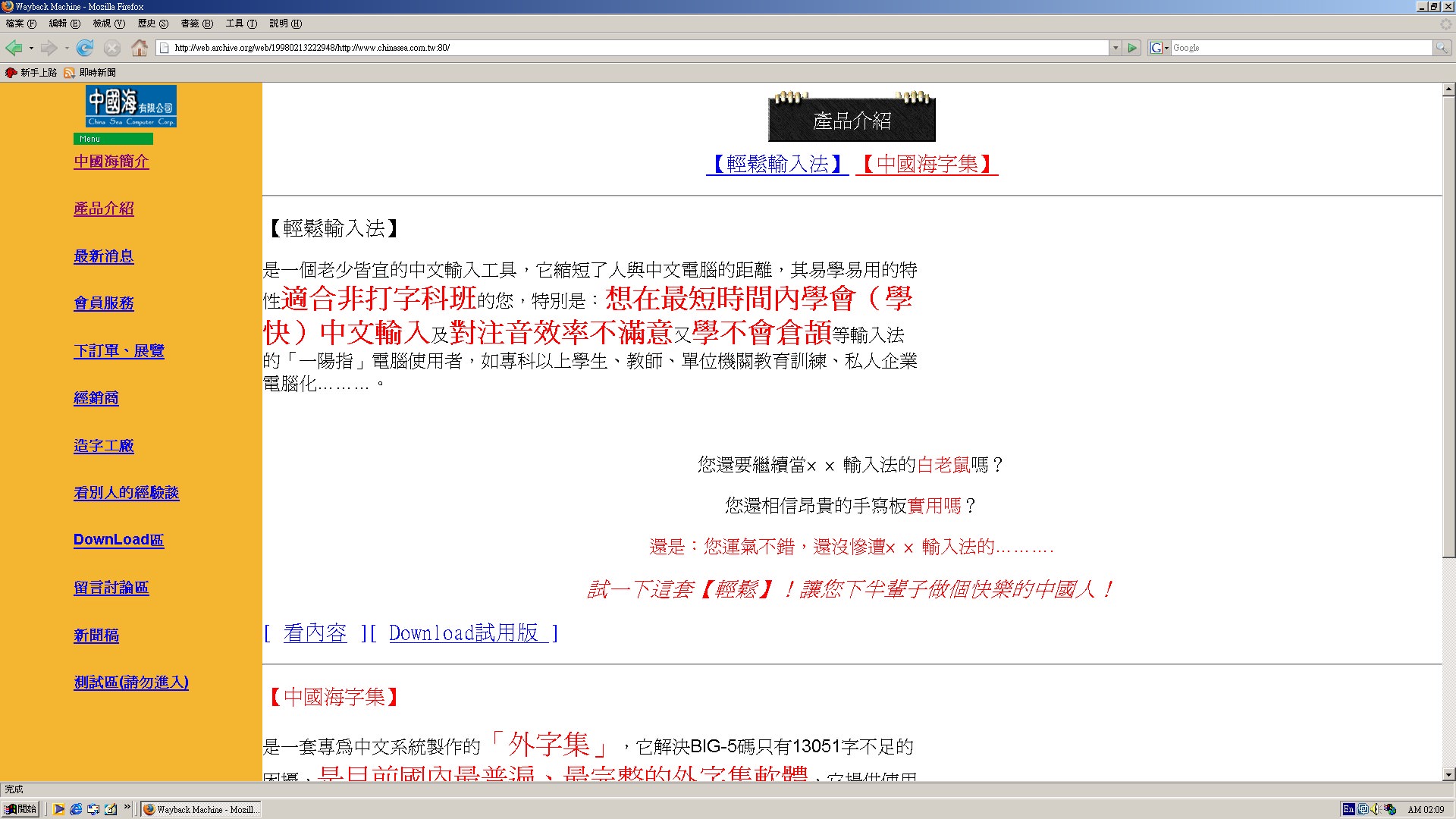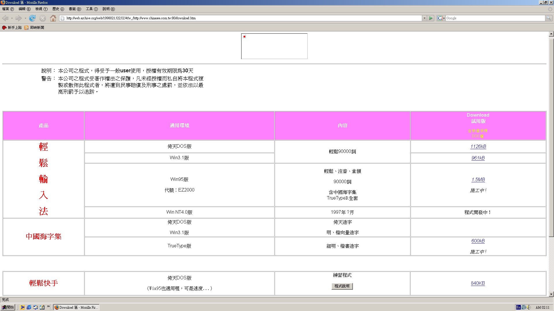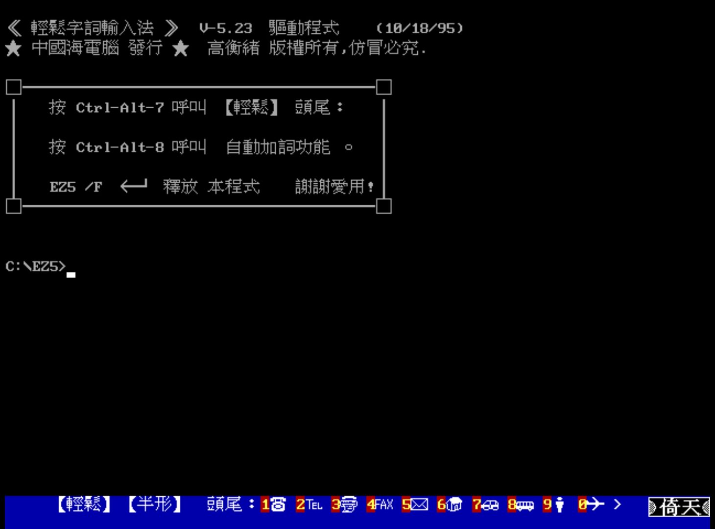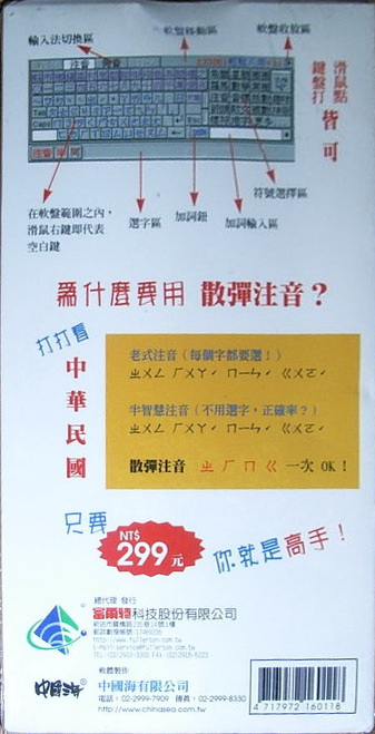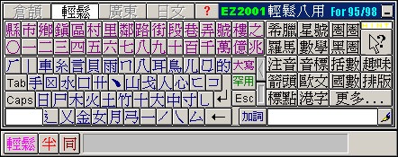 輕鬆輸入法(EZ2000) for 95(附贈【中國海字集】TureType for 95 )上市。