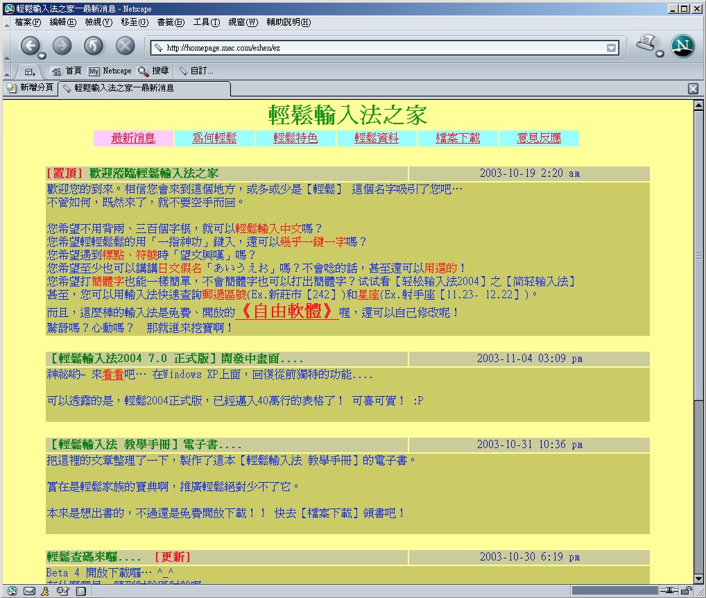 敝小站上線,當時網址「http://homepage.mac.com/eshen/ez」