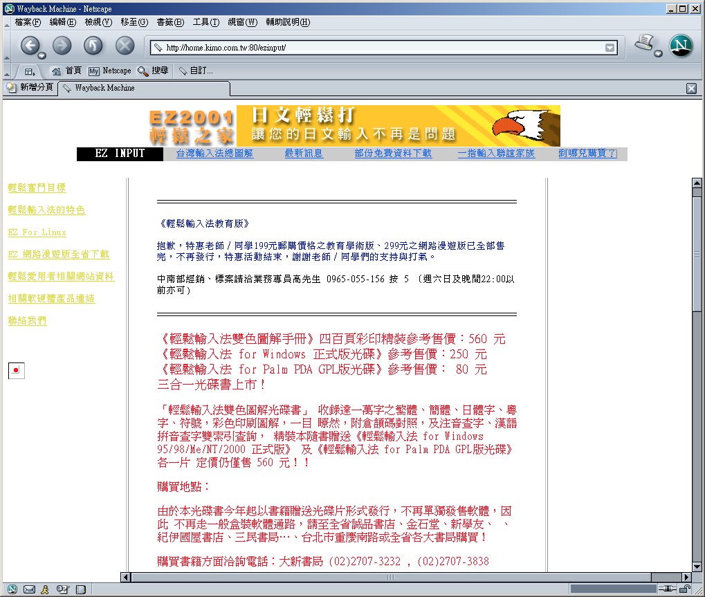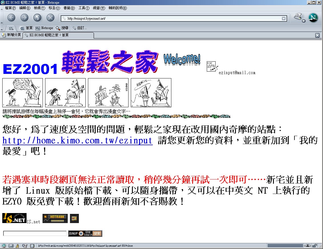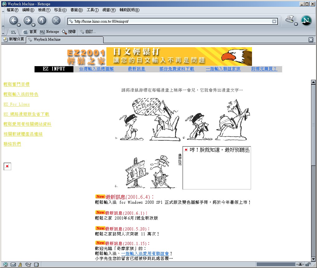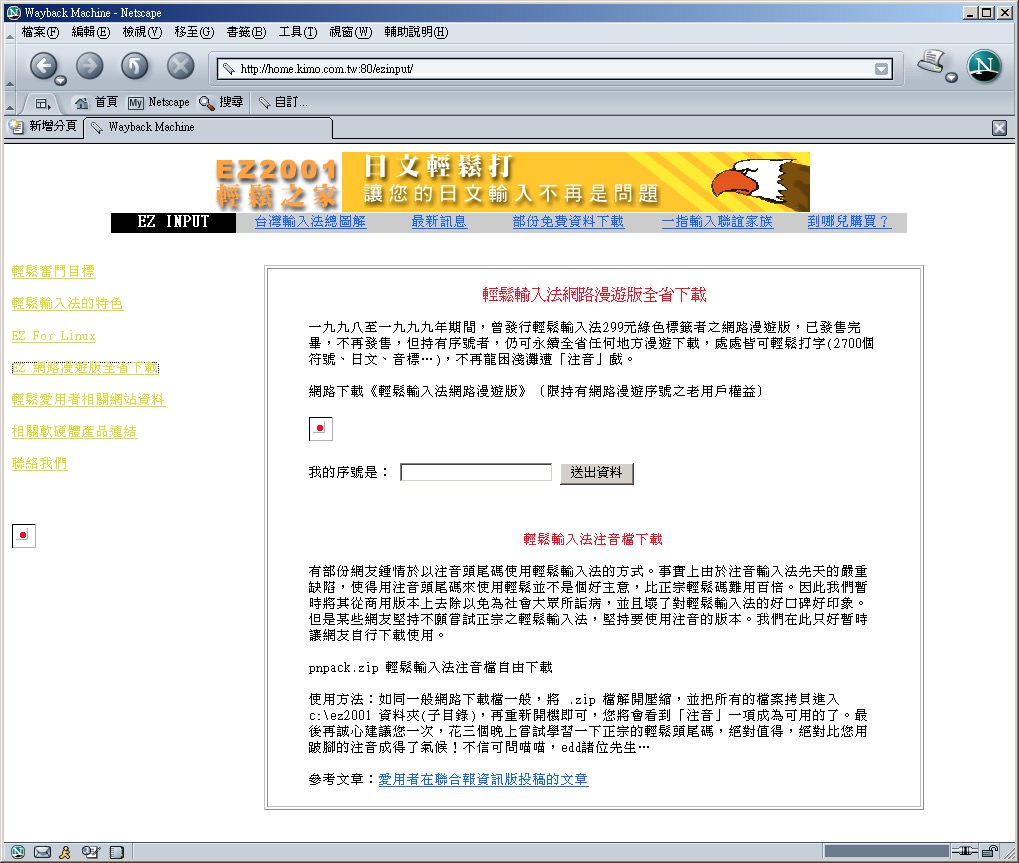 成立奇摩家族「輕鬆輸入法、一指輸入法愛用者聯誼會!」,網址「http://club.kimo.com.tw/clubs/EZ2001」