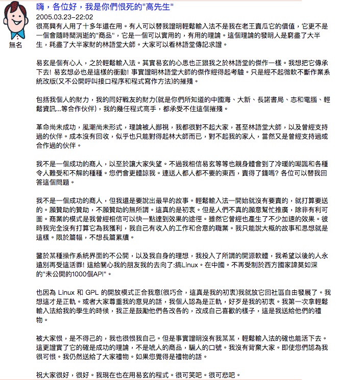 輕鬆輸入法 原作者 高衡緒老師,來到小站留言。道盡這條路的辛酸…